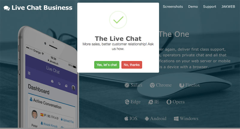 Since Live Chat Business 2.4 we have a new design to engage customers. Before we had a tiny popup with only text, now you can have a title, image and text and the whole message is in a modern modal window.